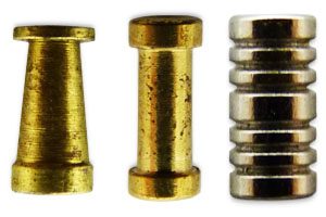 – en intégrant des goupilles « anti-crochetage ». De forme particulière (« champignon », « bobine », « serrated » …), elles ont pour but d’accrocher le rotor en cas de crochetage, et retarder ainsi l’ouverture par manipulation. Voici quelques exemples de ces goupilles :